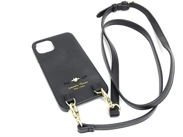 ■極美品■ Samantha Thavasa サマンサタバサ レザー iPhone12/12Pro対応 アイフォンケース スマホケース ブラック系 BF2693