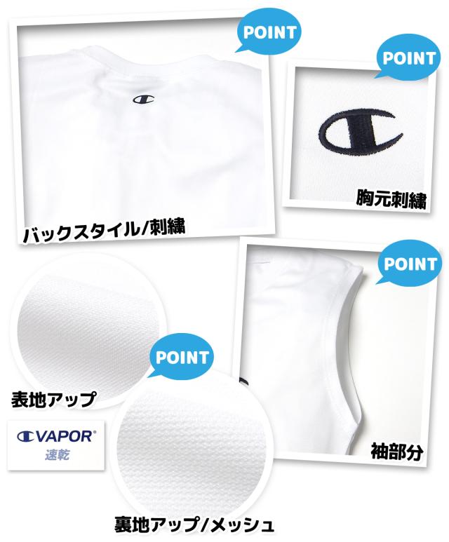 【送料無料】男児 ジュニア 吸水速乾 スリーブレス シャツ Champion/チャンピオン 裏メッシュ 通気性 刺繍 子供服 男の子 140cm 150cm 160cm td-0933a-wt【メール便対応】