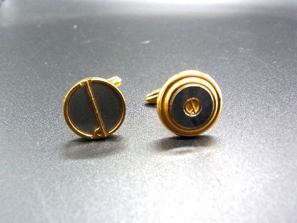 dunhill ダンヒル ロゴプレート カフスボタン カフリンクス アクセサリー 紳士 メンズ ゴールド系×シルバー系 DE0488