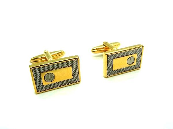 ■美品■ dunhill ダンヒル ロゴプレート カフスボタン カフリンクス アクセサリー ゴールド系×シルバー系 DE1088