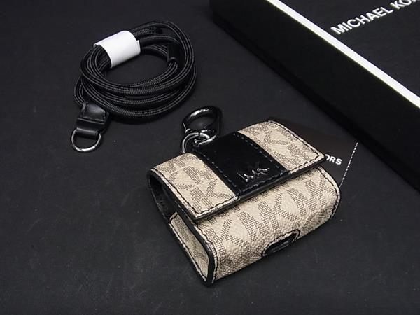 ■新品■未使用■ MMICHAEL KORS マイケルコース MK柄 PVC AirPodsケース エアポッズケース キーホルダー ベージュ系×ブラック系 BG6631