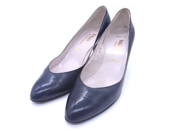■美品■ BALLY バリー レザー ヒール パンプス 2 (約22.0cm) シューズ 靴 レディース ネイビー系 DD9014