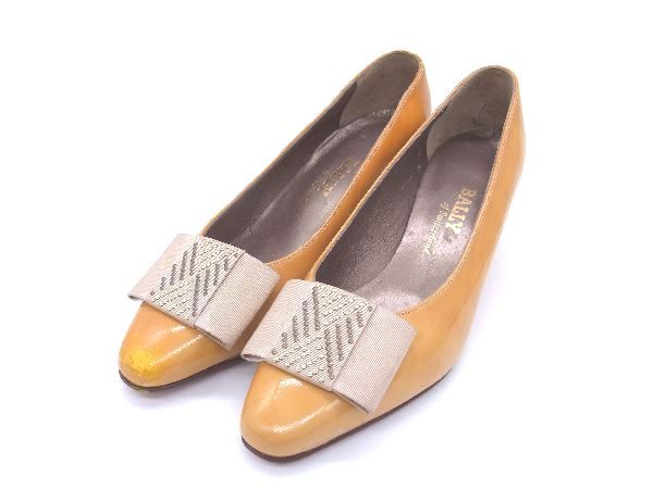 BALLY バリー PVC リボン スタッズ ヒール パンプス サイズ3 (約23cm) 靴 シューズ イエロー系 レディース DD6174