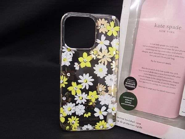 ■新品■未使用■ kate spade ケイトスペード フラワー 花柄 iPhone13PRO 対応 アイフォンケース レディース クリア×イエロー系 AQ3358