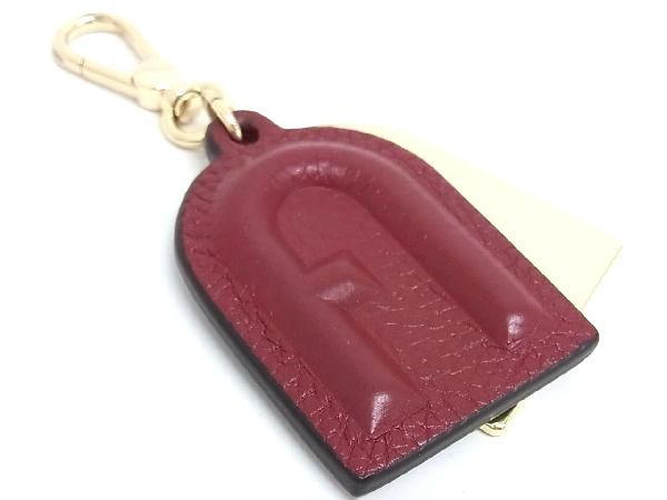 ■美品■ FURLA フルラ レザー キーホルダー キーリング バッグチャーム レディース ボルドー系×ゴールド系 DA4291
