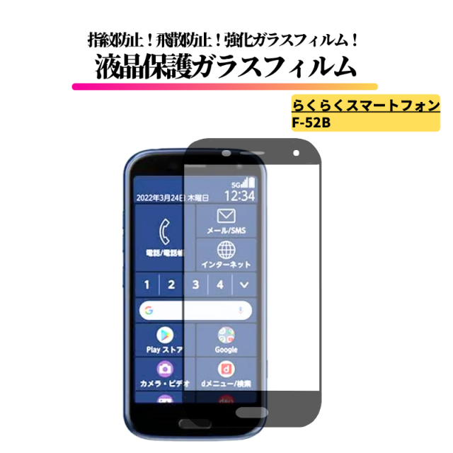 らくらくスマートフォン F-52B ガラスフィルム 強化ガラス 保護フィルム 全面保護 光沢 高透過 硬度9H 飛散防止 指紋防止 FCNT docomo ドコモ らくらくホン らくらくスマホ F52B