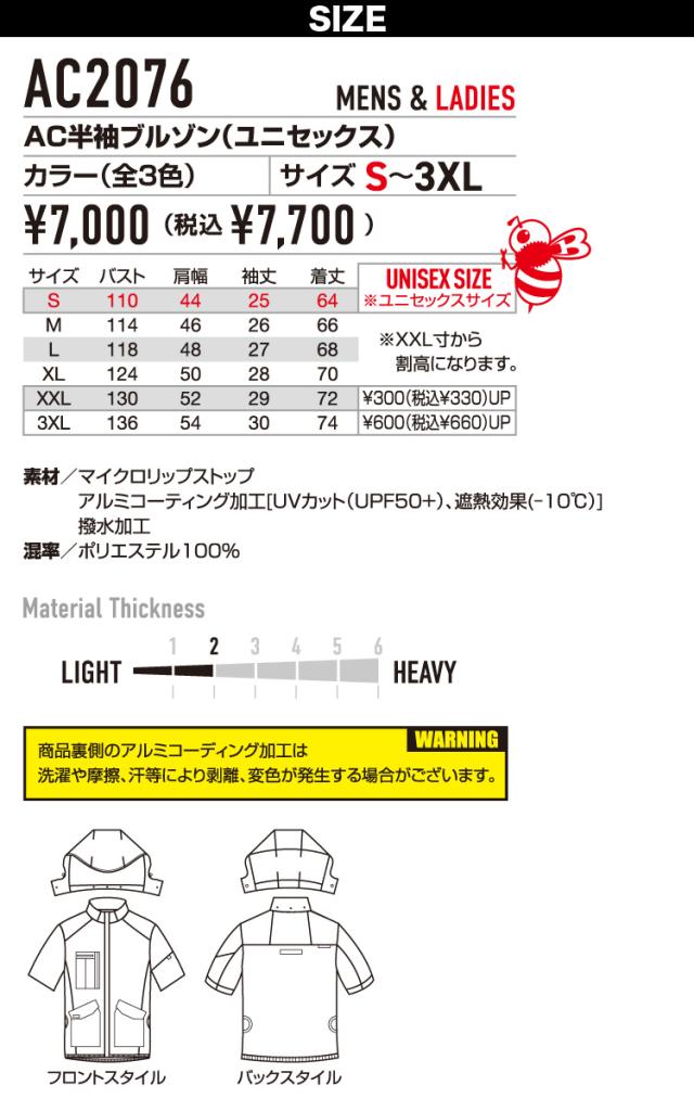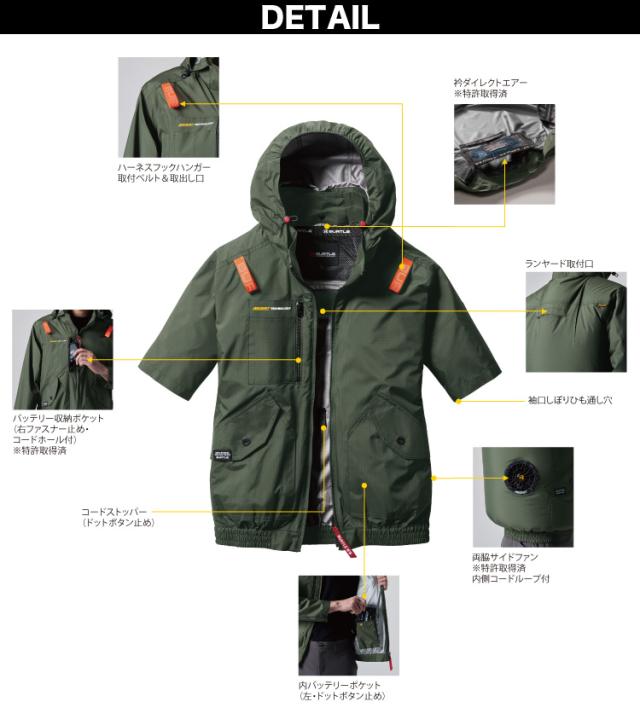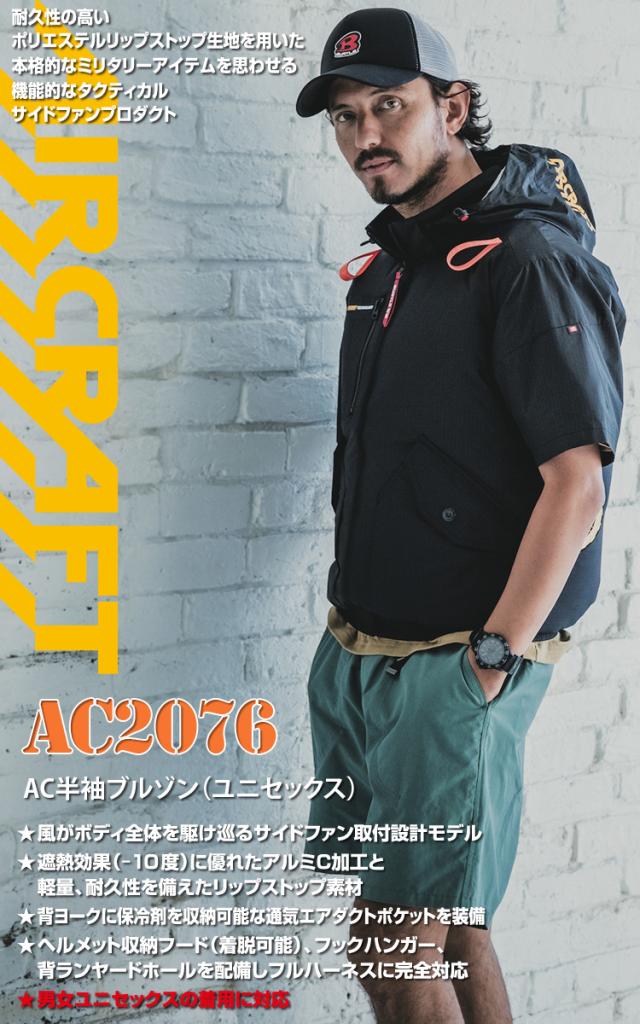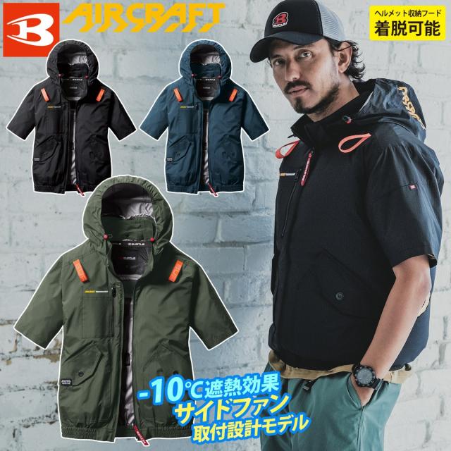 (サイドファン取付設計モデル)バートル エアークラフト 2025年モデル ACブルゾン(ユニセックス) AC2076 単品 半袖ブルゾン BURTLE AIRCRAFT フルハーネス対応 電動ファン用ウェア ヘルメット収納フード(着脱可能) 遮熱効果マイナス10度