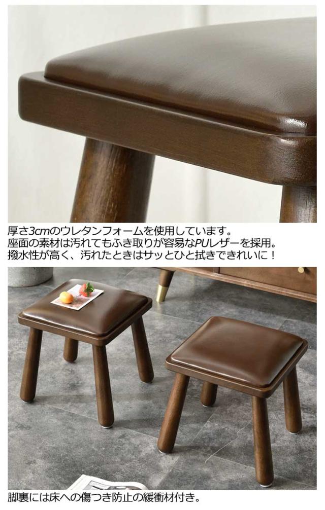 低め スツール 木製 ロースツール 丸 四角 ミニスツール 丸椅子 クッション入り 革張り PU レザー チェア 子供用 いす イス ウッドスツール アンティーク ヴィンテージ 玄関 腰掛け コンパクト キッズスツール 低い 北欧 おしゃれ 高級感