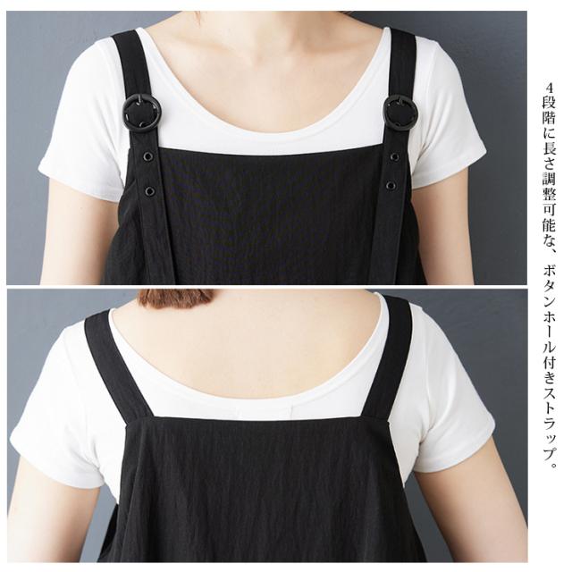 大きいサイズ ワンピース 黒 ロング丈 レディース ジャンパースカート (588680)