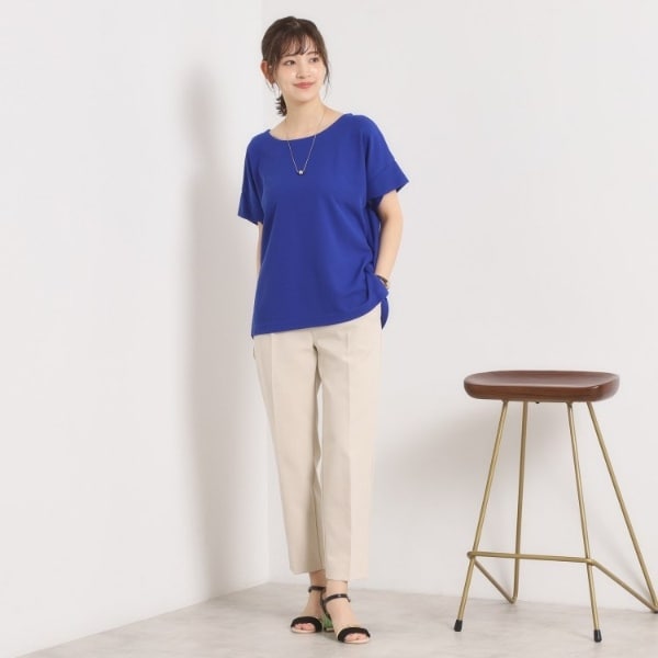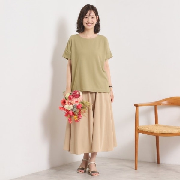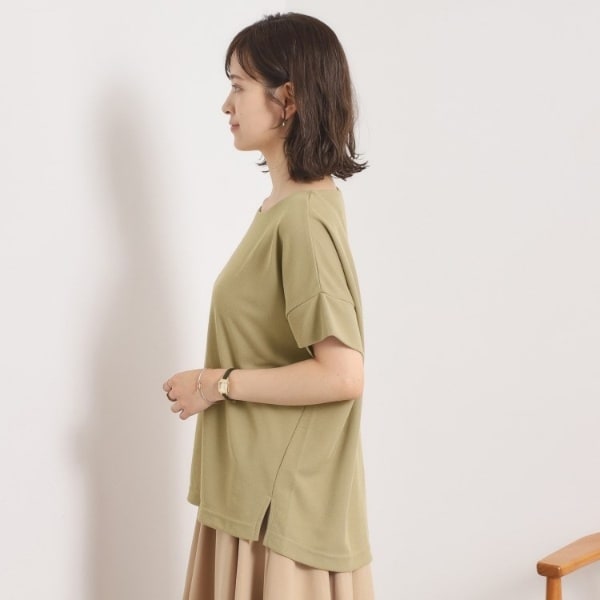 身頃は適度にゆとりを持たせたリラックス感のある着心地で、脇線を前フリにし前身頃を細くすることで着痩せ効果も期待できるデザイン。