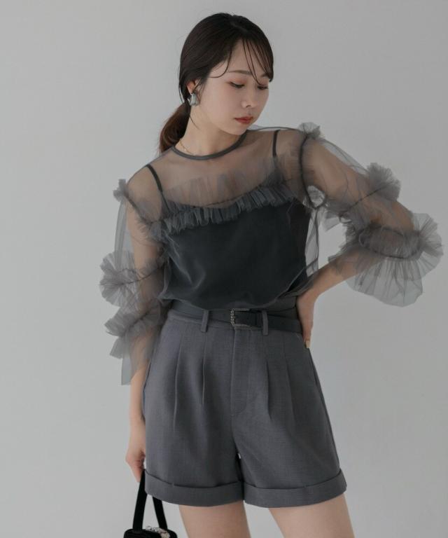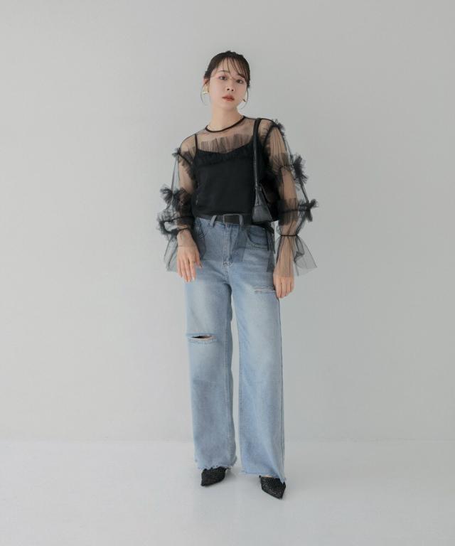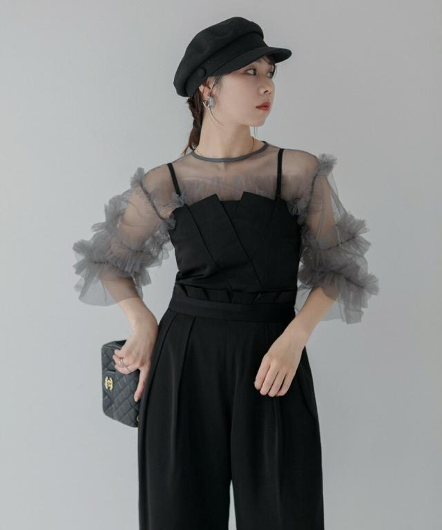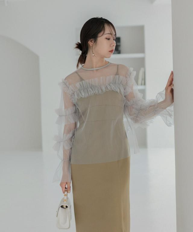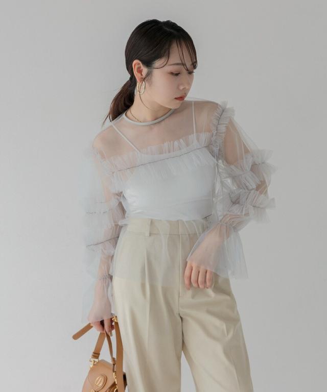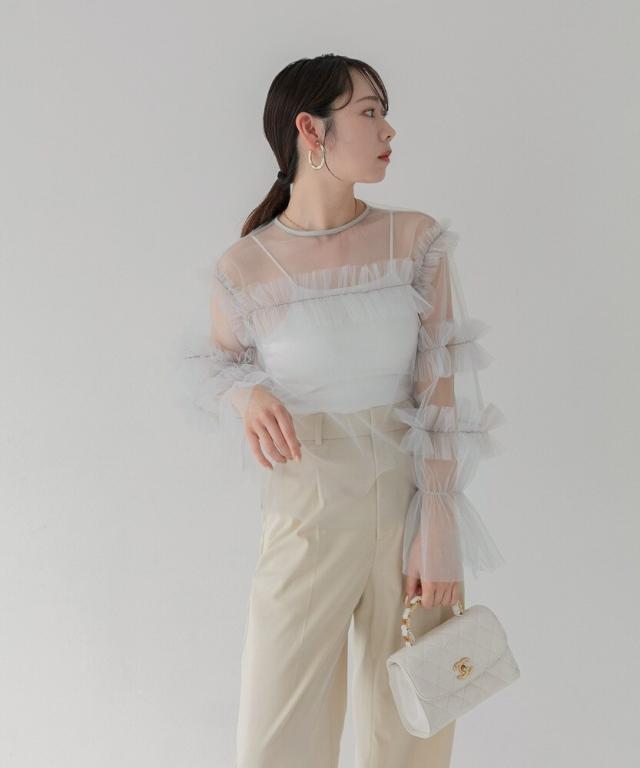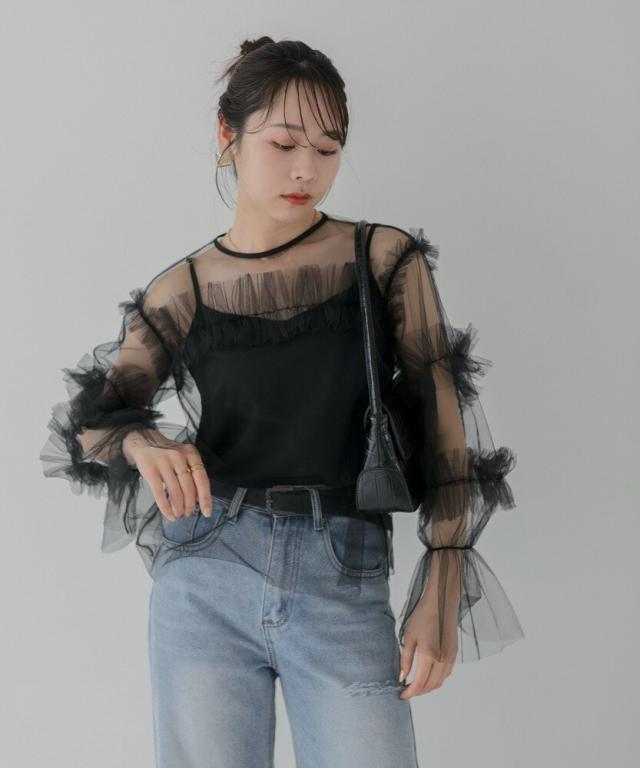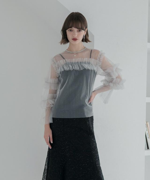 チュールフリルトップス