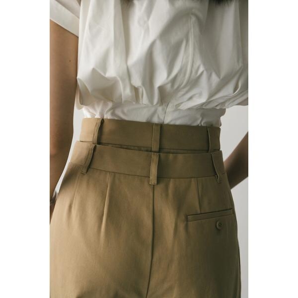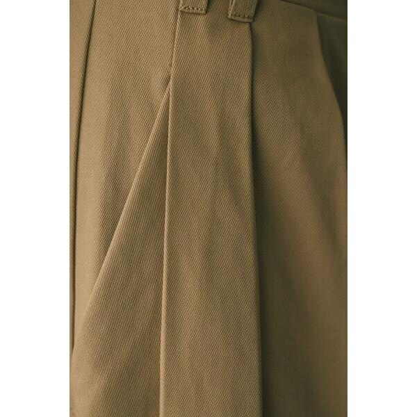 モデル身長172cm(Mサイズ着用)スタイルアップしてくれるレイヤーウエストがポイントの型崩れしにくいチノパンツ。トレンド感あるワイドシルエットでシンプルなスタイリングにも映える一枚です。透け感なし、ストレッチなし。【お手入れ方法】マシンウォッシュ可