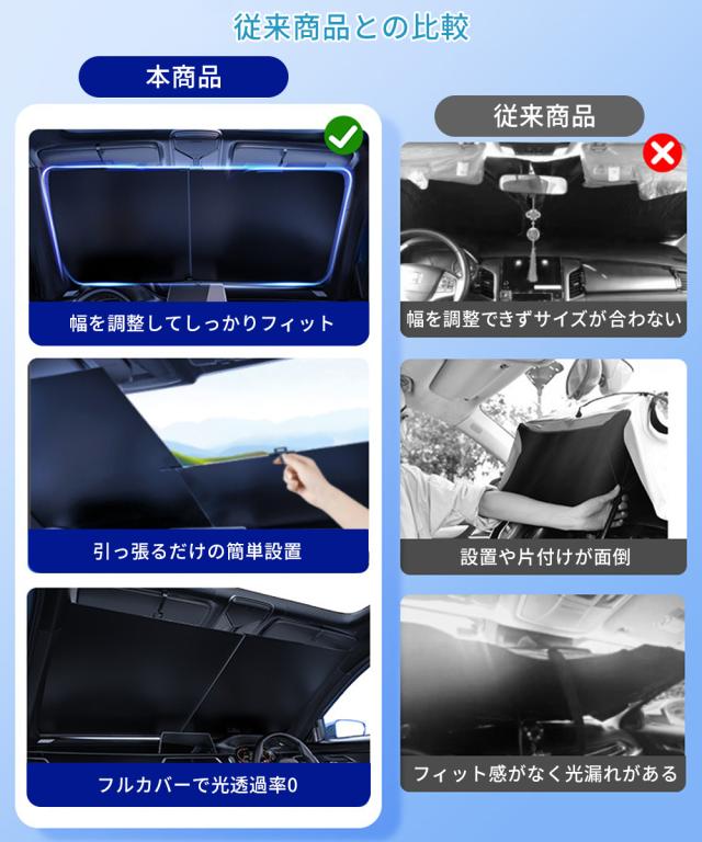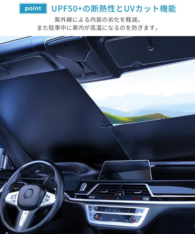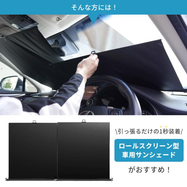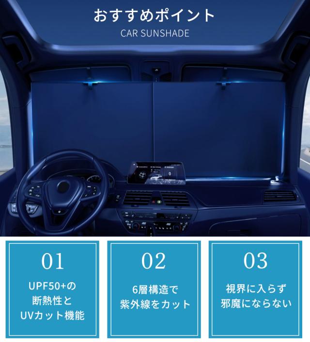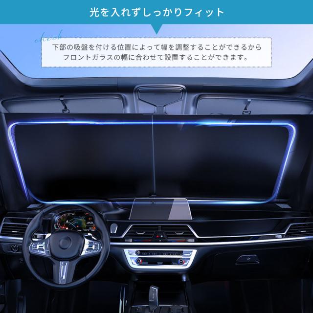 サンシェード 車 フロント ロール 遮光 ロールスクリーン 伸縮 フロントサンシェード 日よけ 日除け UVカット 紫外線対策 断熱 車中泊 暑さ対策 簡単取付 全車種対応 UPF50+ 吸盤 ワンタッチ