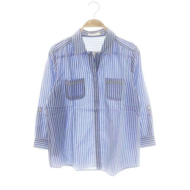 【中古】未使用品 エニィスィス エニシス anySiS ストライプ ロールアップ シャツ スタンドカラー 七分袖 2 青 白