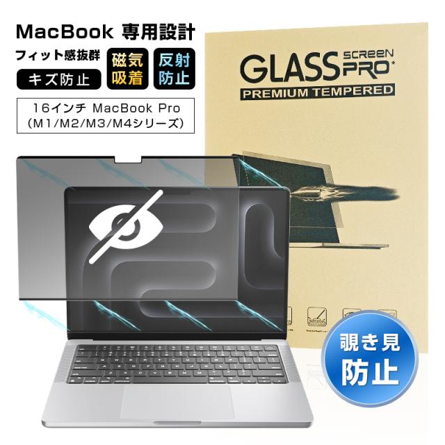 16インチ MacBook Pro (M4 Pro)(M4 Max) (M3 Pro)(M3 Max) 覗き見防止フィルム マグネット式フィルム 16in MacBook Pro (M1 Pro/M1 Max.2021/M2 Pro/M2 Max.2023) プライバシー保護 着脱簡単 繰り返し使用可能 指紋防止 マックブックプロ 液晶画面保護PETシール 高視認性
