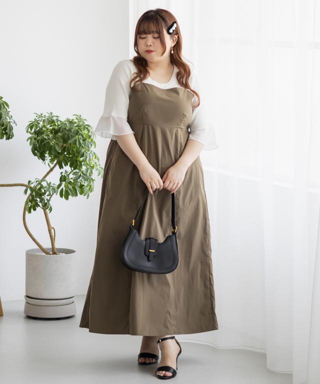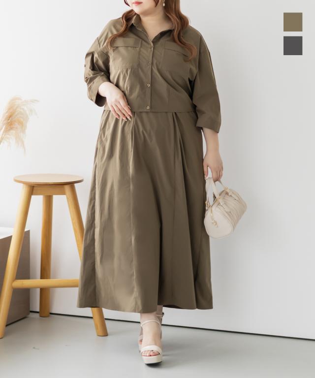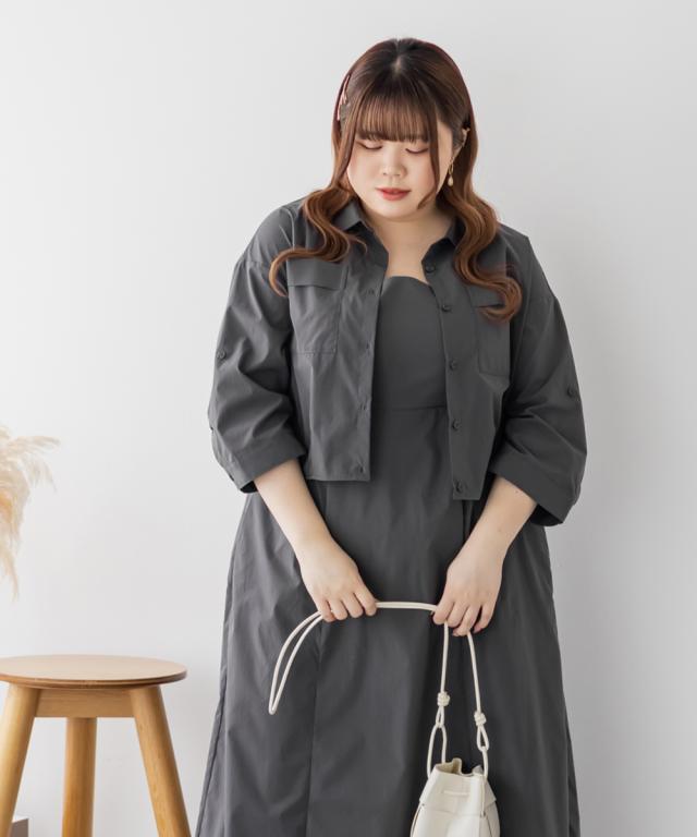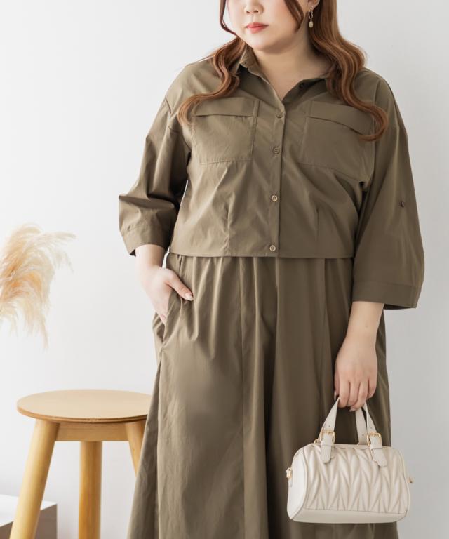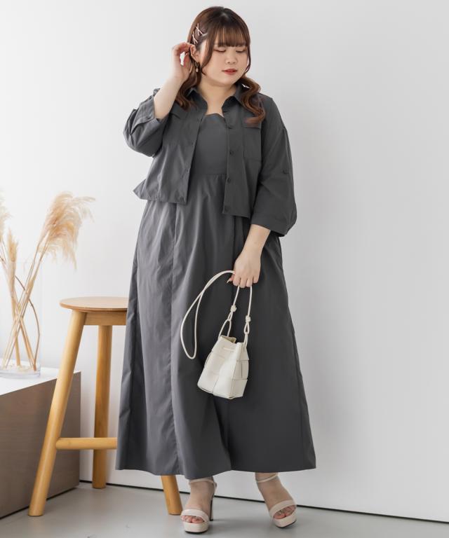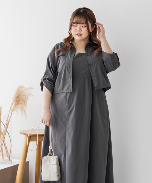 大きいサイズ/レディース/3L/4L/5L/ポケットデザインシャツ&キャミワンピースセット