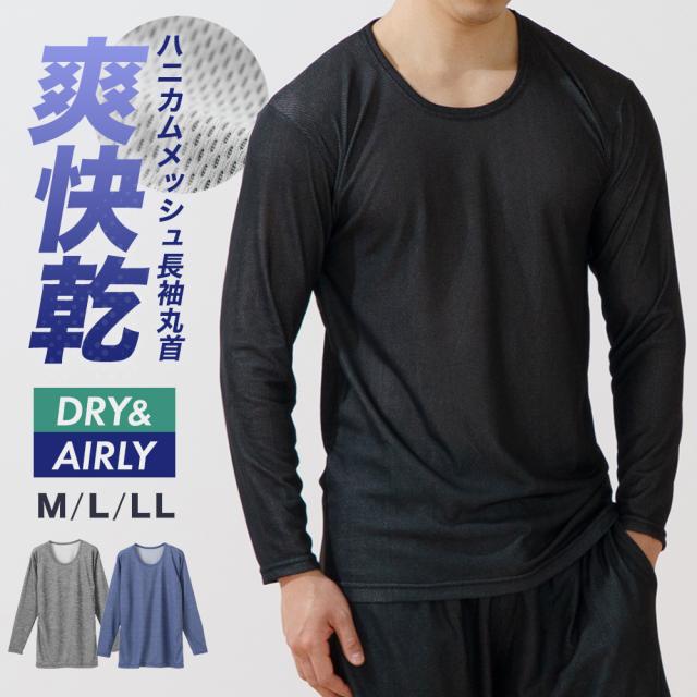スポーツ ウェア インナー メンズ 年間 ストレッチ 長袖 丸首 シャツ ドライ 吸汗速乾 肌着 紳士 男性 new 25SS T4282P-E