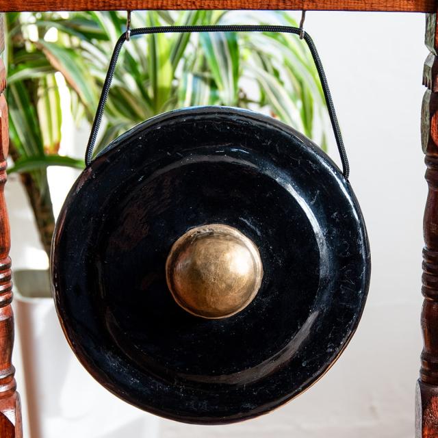 そんなゴングですが、こちらの鐘の部分は装飾用のため、実際にはほとんど音が響きません。演奏用としてはご使用いただけませんが、その分、ディスプレイとしては抜群の雰囲気を誇ります。 リビングや玄関、レストランの入り口、バリ風インテリアやエスニック空間のアクセントとしてお楽しみくださいませ。