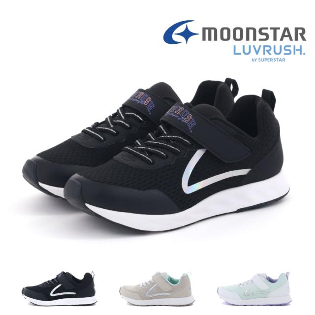 ムーンスター moonstar キッズ ジュニア スニーカー スーパースター ラブラッシュ LV1234 女の子 バネのチカラ 子供靴 運動靴 シンプル マジックテープ ベルクロ 抗菌 防臭 洗えるインソール 軽い 軽量