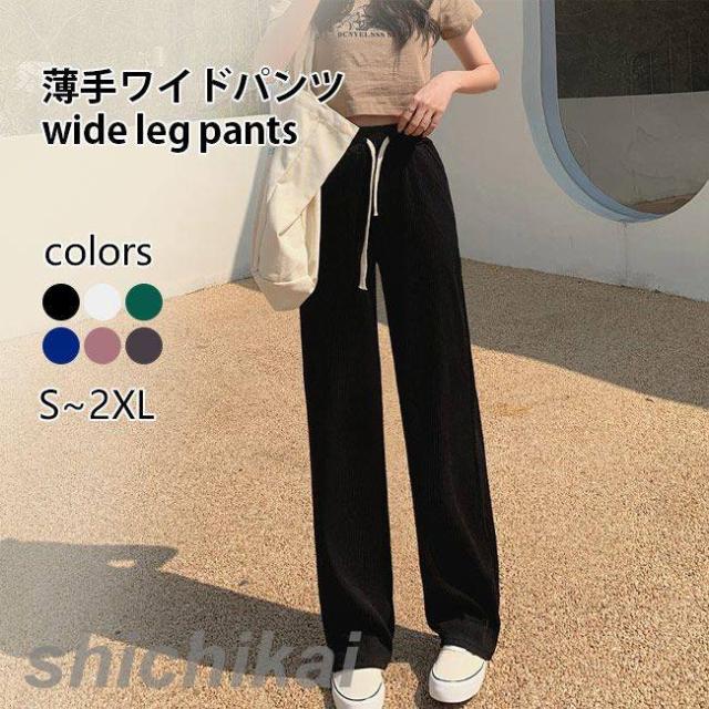 ■視覚上脚長効果バツグン、レディース薄手ワイドパンツ