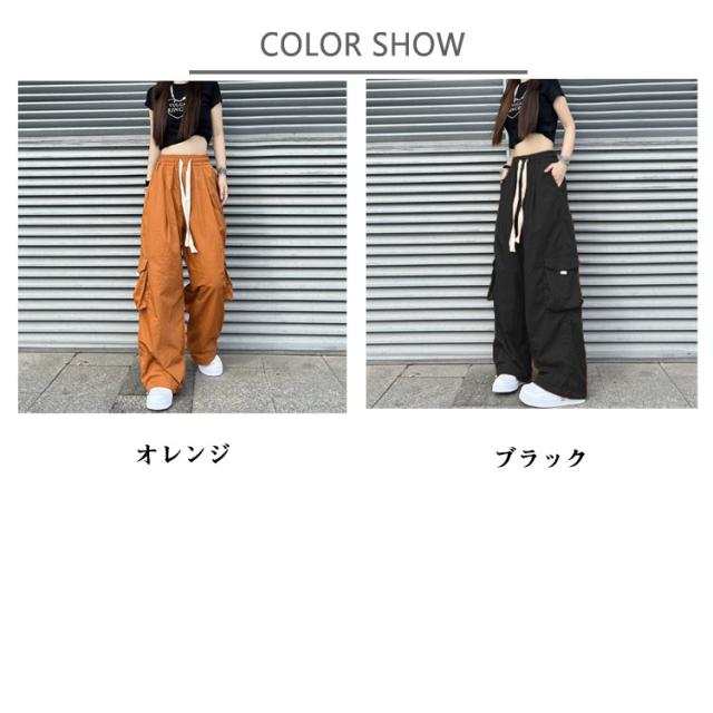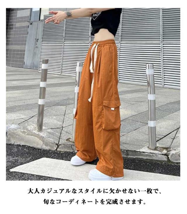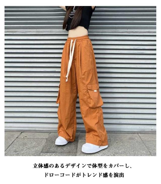 カーゴパンツ レディース ロングパンツ ワイドカーゴパンツ ポケット付き ゆったり ヒップホップ ダンス用 かっこいい ボトムス 長ズボン ダンス ストリート系 着痩せ 秋 冬 春 夏