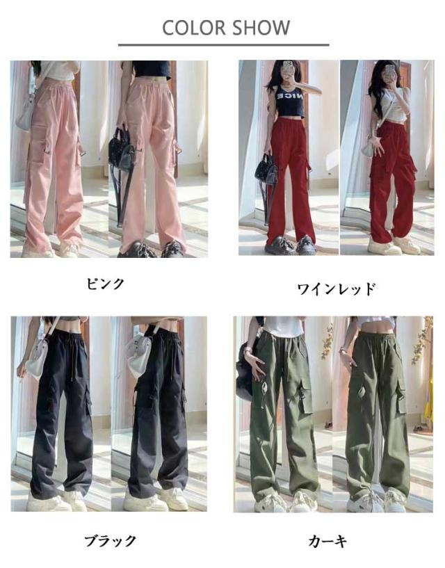 カーゴパンツ レディース ロングパンツ ワイドカーゴパンツ ポケット付き ゆったり ゆったり 美脚 接触冷感 速乾 ヒップホップ ダンス用 かっこいい ボトムス 春 夏 秋 普段着