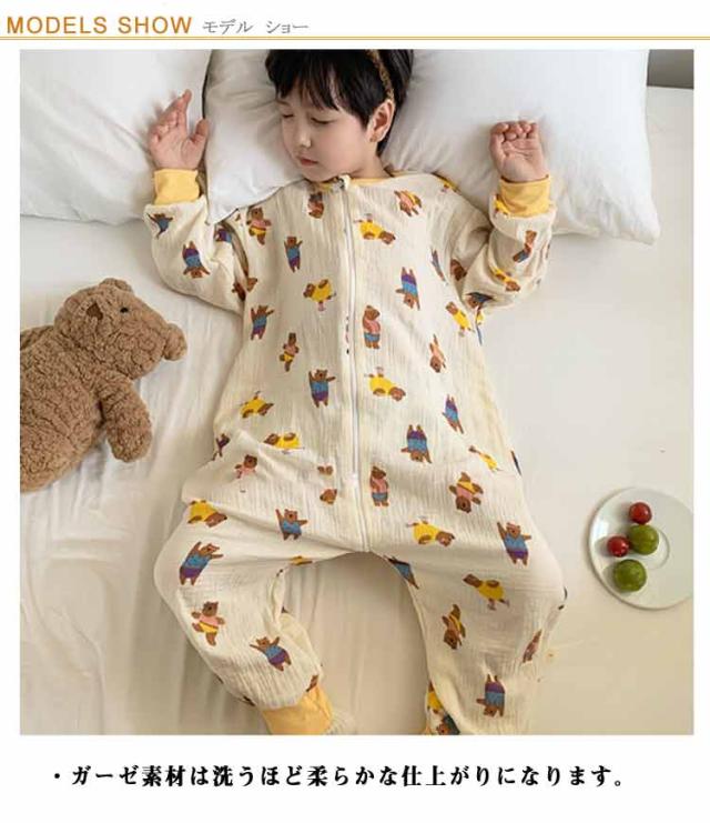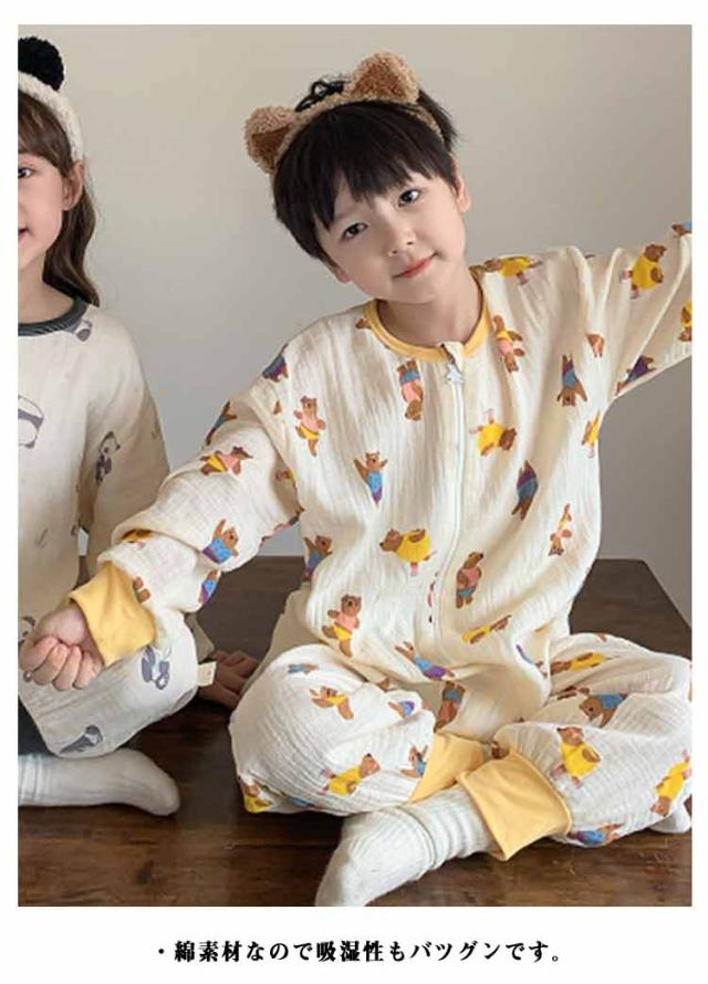 キッズ パジャマ ダブルガーゼ ロンパース 長袖 ルームウェア ジップアップ 保育園 幼稚園 小学生 お昼寝 ガーゼ 前開き 綿 子供服 出産祝い 春 秋