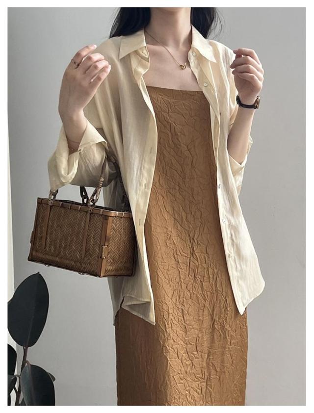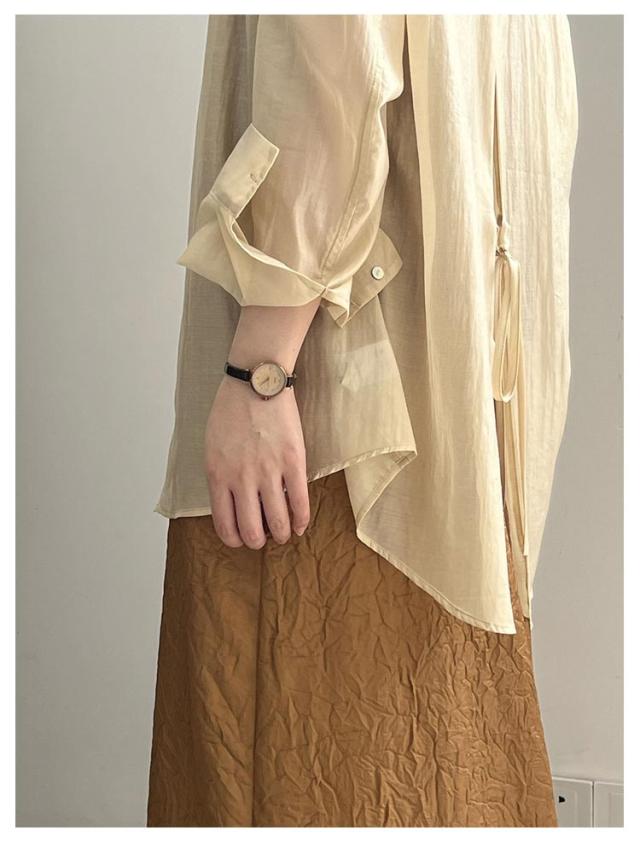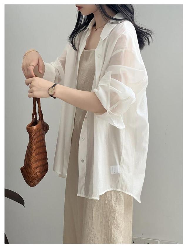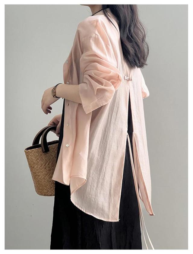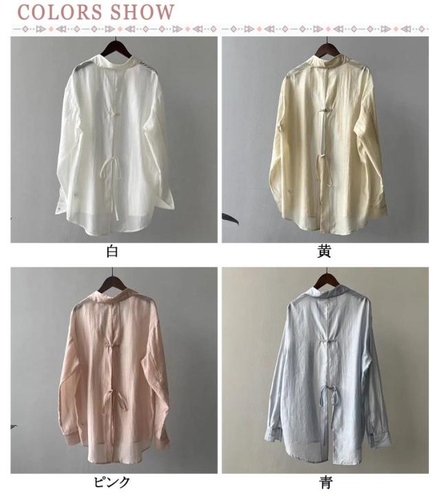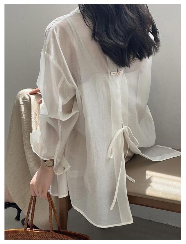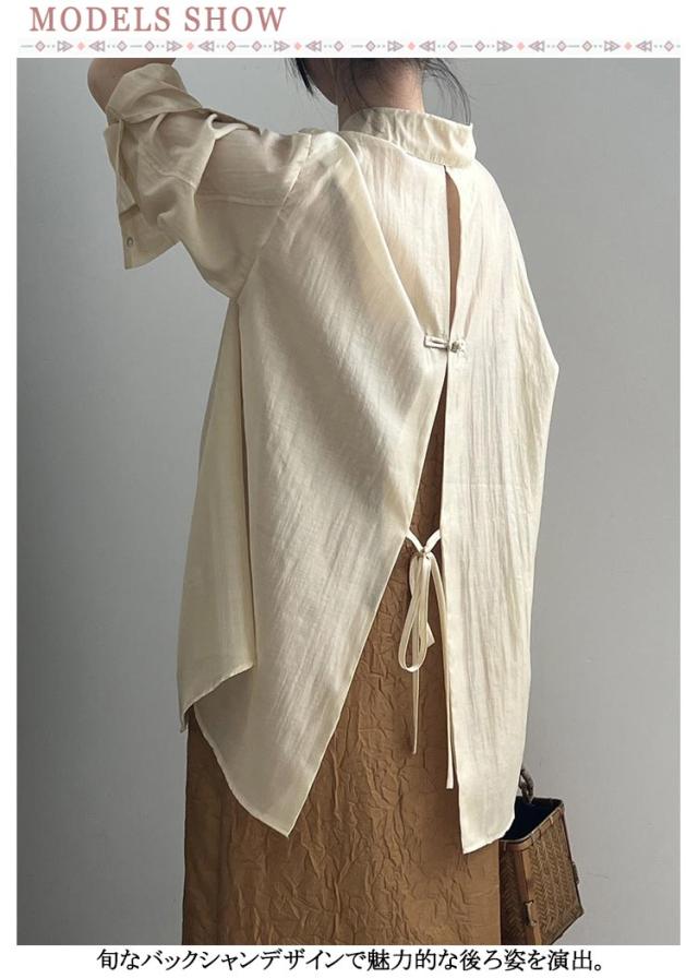 シャツ レディース トップス ブラウス シースルーシャツ サマーシャ バックリボン バックオープン ゆる レイヤード 重ね着風 ドロップショルダー ドルマン ロング ロングシャツ オフィス 白 お尻が隠れる 透け シースルー シアー 春 夏 送料無料