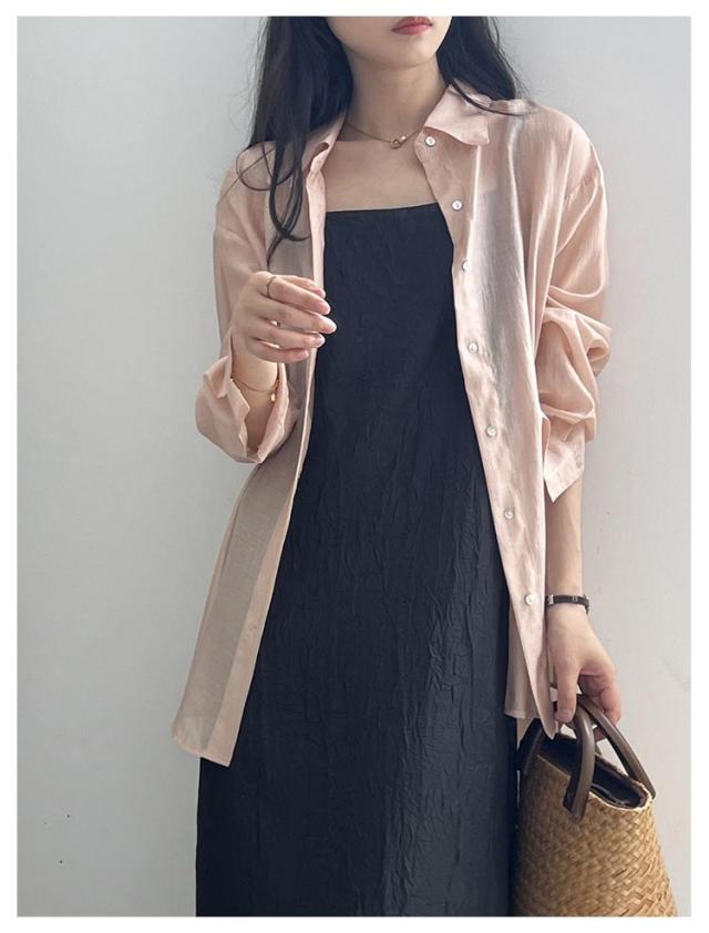 | 滑らかでシルクタッチな極上肌触りのシャツです。 旬なバックシャンデザインで魅力的な後ろ姿を演出。 軽やかな生地感、そして女性らしい透け感が大人の女性を引き出します。 | |