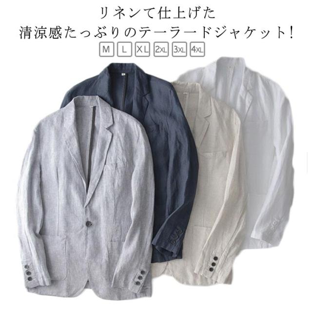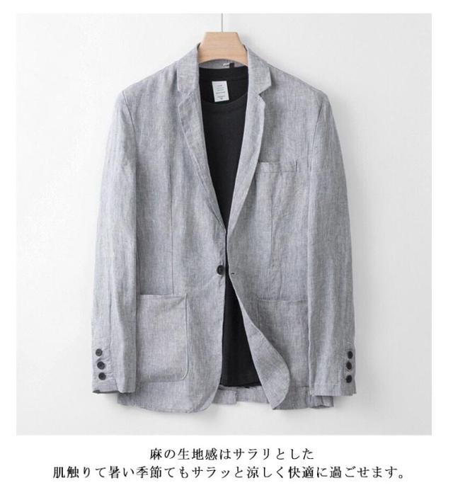 テーラードジャケット メンズ サマージャケット 春夏 長袖 麻 リネンジャケット ビジネス フォーマル ブレザー 1ツボタン 薄手 UVカット オフィス カジュアル サマースーツ スーツジャケット 紳士服 無地 ゴルフ 仕事 夏服 秋服 春物 父の日 プレゼント 送料無料