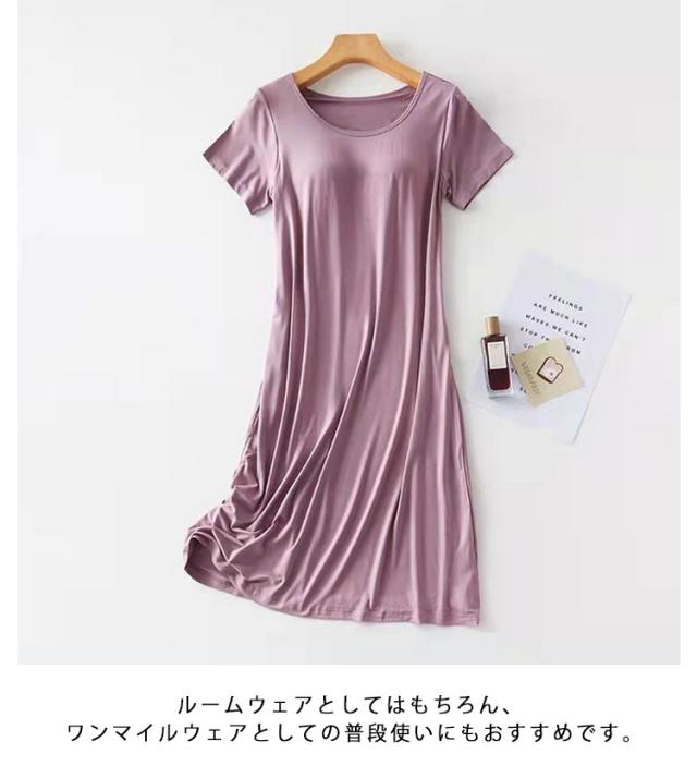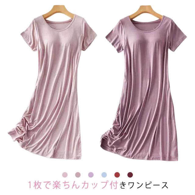 カップ付き ワンピース パジャマ パジャマ ワンピース カップ付き 半袖 マキシワンピース パジャマ 夏 薄手 ロング丈 無地 ルームウェア ロングTシャツ 可愛い かわいい ランジェリー 大きいサイズ 春 夏 薄手 無地 シンプル 送料無料