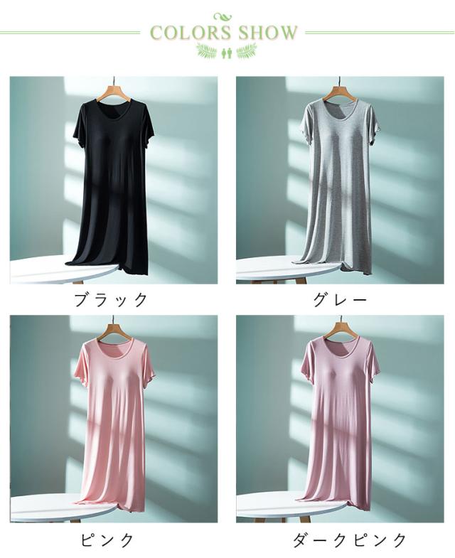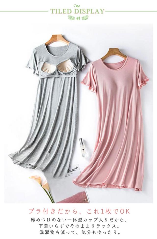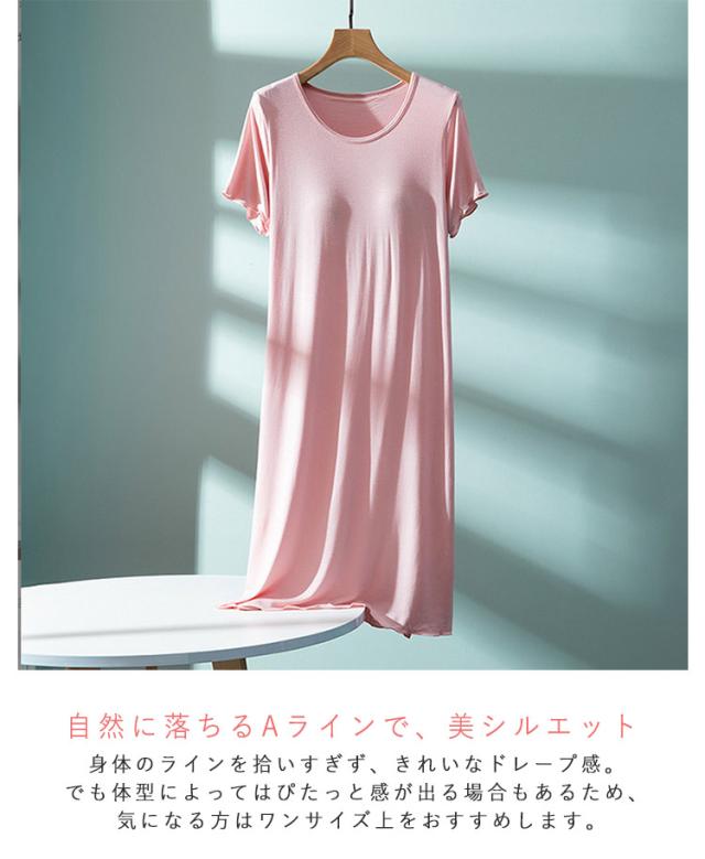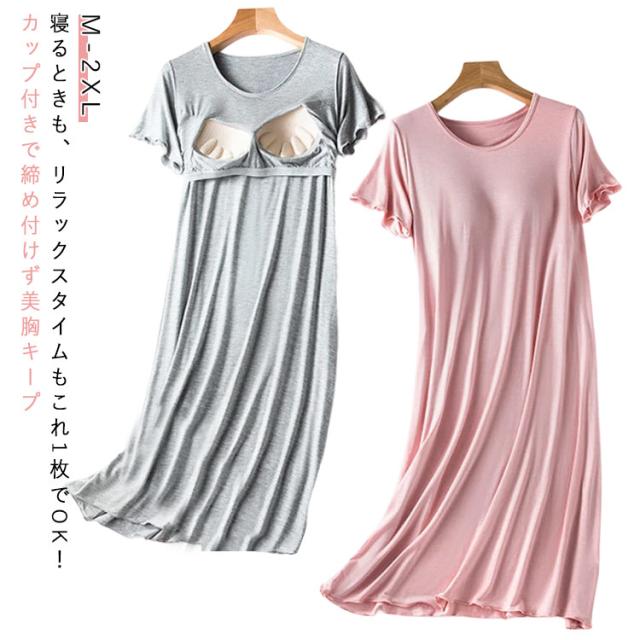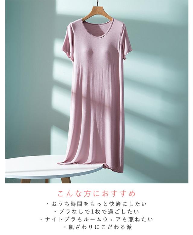 カップ付き ワンピース ルームウェア レディース 半袖 ロング丈 ナイトウェア 部屋着 パッド付きワンピ モダール カップ付きワンピース ナイトブラ一体型 春 夏用 涼しい ゆったり 快適 肌触り 柔らかい かわいい おしゃれ シンプル 無地 大きいサイズ 産後 送料無料