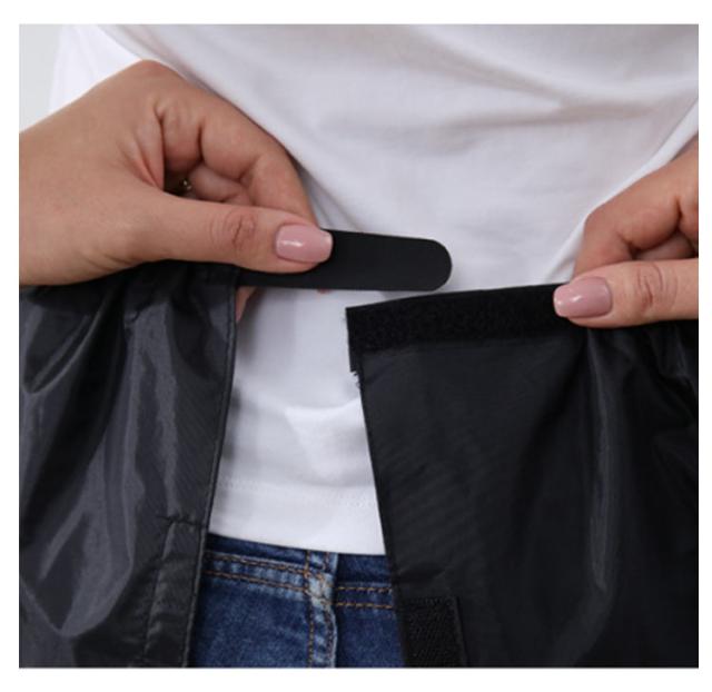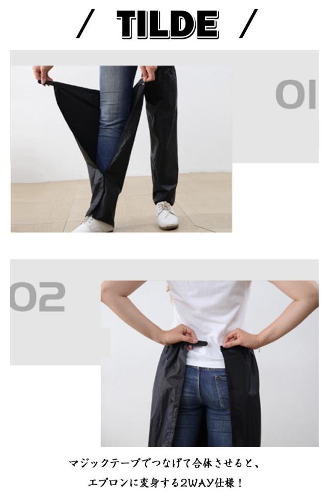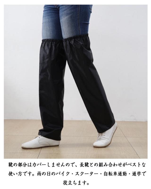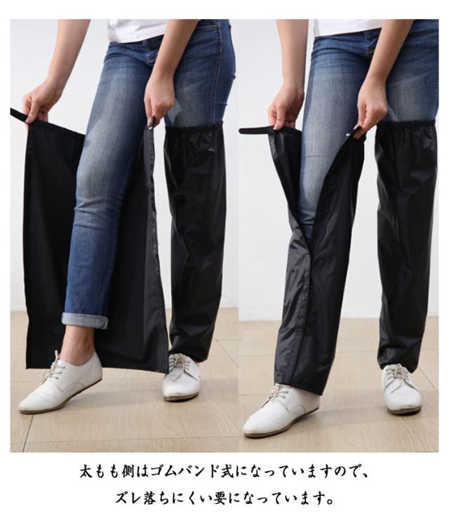 | 【レインカバー】 簡単装着!2WAY 足首からひざ上丈まですっぽり覆ってくれる、ロング丈のレインレッグカバー。 マジックテープでつなげて合体させると、エプロンに変身する2WAY仕様! 靴を履いたままカンタンに脱着ができる、脚だけのレインコートです。 フルオープンタイプのレッグカバーなのでオーバーパンツを履くより簡単に雨からズボンを守ります。 太もも側はゴムバンド式になっていますので、ズレ落ちにくい要になっています。 縦方向へはマジックテープ方式(面ファスナー)で閉じますので、簡単に脱着ができます。 左右セットの商品ですが、2つを組み合わせると腰回りの防水エプロンとしても使用可能です。 靴の部分はカバーしませんので、長靴との組み合わせがベストな使い方です。雨の日のバイク・スクーター・自転車通勤・通学で役立ちます。 | |