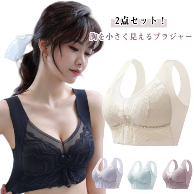 胸を小さく見せるブラ 補正インナー ブラジャー 胸が小さく見えるブラ レース ブラ 可愛い 2枚入 ノーワイヤー 着痩せブラ スッキリ 背中 フルカップ レディース 脇肉 大きな胸を小さく見せるブラジャー 送料無料