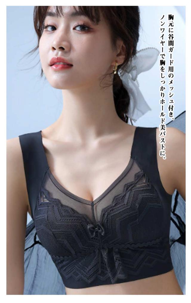 | 2点セット!胸を小さく見えるブラジャー すっきり洋服を着こなしたい方はもちろん、着物や浴衣等の和装にもおすすめ サイドは脇高仕様で押さえたバストが流れないようにカバー。 太めの肩ひもでズレ落ちにくく、肩への食い込みの負担を軽減。重たいバストに安定感。 フロントのレースは見えてもかわいく、伸縮性のある素材で、しめつけすぎないフィット感。 胸元に谷間ガード用のメッシュ付き、ノンワイヤーで胸をしっかりホールド美バストに。 U字型のバックストラップが背中のぜい肉をキャッチし綺麗な後ろ姿を演出。 | |