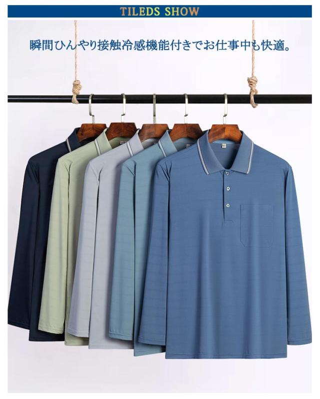 メンズ Tシャツ ポロシャツ 冷感 長袖 ストレッチ 胸ポケット 吸汗 速乾 涼しい 薄手 通気性 メッシュ生地 通勤 カジュアル 男性 紳士服 春 夏 お父さん おじいちゃん 誕生日プレゼント 記念日 結婚記念日 父の日 敬老の日 ギフト 送料無料