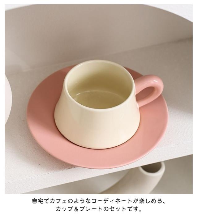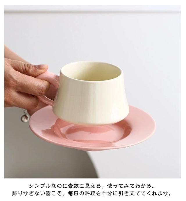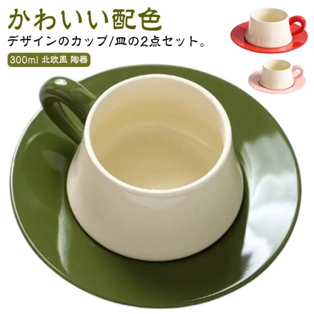 コーヒーカップ ソーサー セット 陶器 マグカップ 300ml 配色 高級感 おしゃれ かわいい マグ カップ 珈琲カップ 皿 碗皿 サラ モダン 北欧 カフェ 珈琲 コーヒー 食器 カフェ風 和風 洋風 コーヒーカップ シンプル 男性 女性 大人 ピンク グリーン 緑 黒 赤