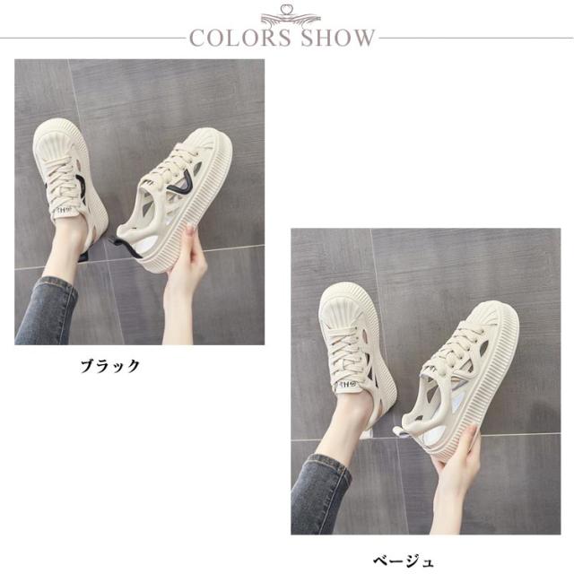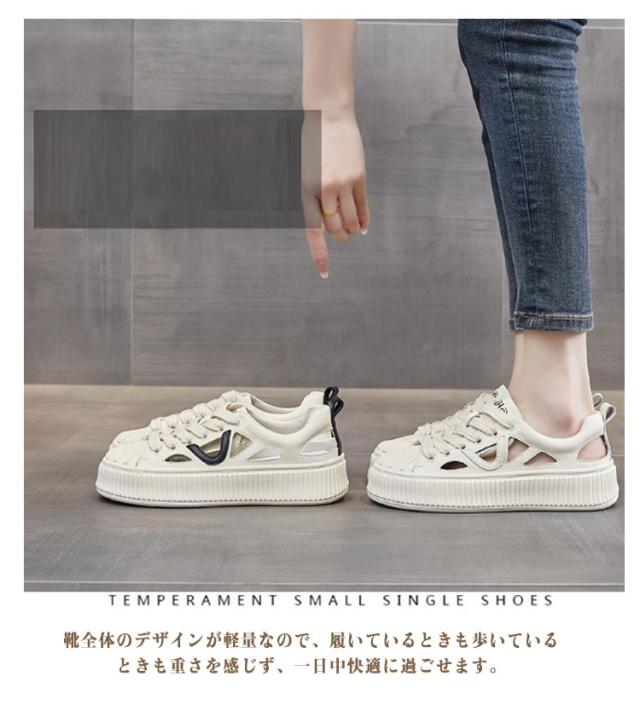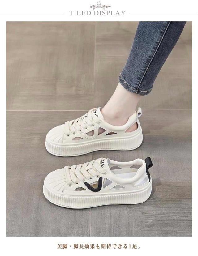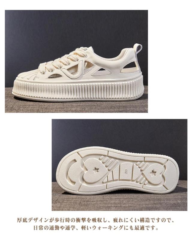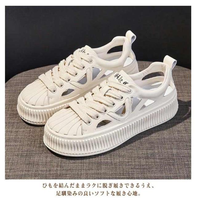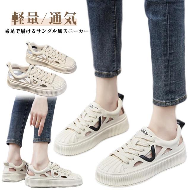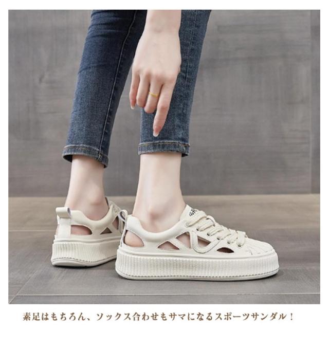 | 素足で履けるサンダル風スニーカー! 美脚・脚長効果も期待できる1足。 ひもを結んだままラクに脱ぎ履きできるうえ、足馴染みの良いソフトな履き心地。 素足はもちろん、ソックス合わせもサマになるスポーツサンダル! 靴全体のデザインが軽量なので、履いているときも歩いているときも重さを感じず、一日中快適に過ごせます。 シンプルながらもおしゃれなデザインは、どんな服装にも合わせやすく、カジュアルな日常着からアクティブなシーンまで幅広く活躍します。 厚底デザインが歩行時の衝撃を吸収し、疲れにくい構造ですので、日常の通勤や通学、軽いウォーキングにも最適です。 | |