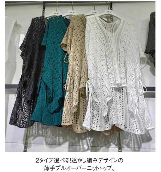 | 2タイプ選べる!透かし編みデザインの薄手プルオーバーニットトップ。 通気性に優れた素材を使用し、軽くて快適、夏にぴったりのアイテムです。 ゆったりとしたシルエットがリラックス感あり、体型カバーも抜群。 キャミソールなどのインナーと合わせて、春夏のお出かけシーンに大活躍。 | |