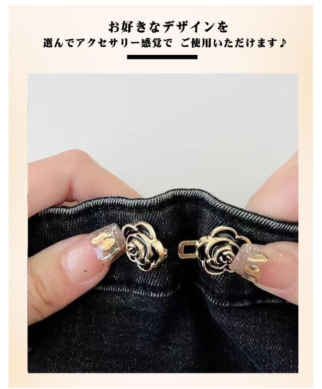 | オシャレにサイズ直し!ウエスト調整クリップアクセサリー お手持ちのパンツやスカートに取り付けて 簡単にウエストを調整できる便利アイテム◎ お好きなデザインを選んでアクセサリー感覚で ご使用いただけます♪ | |