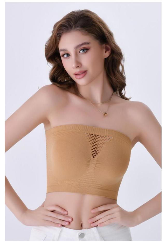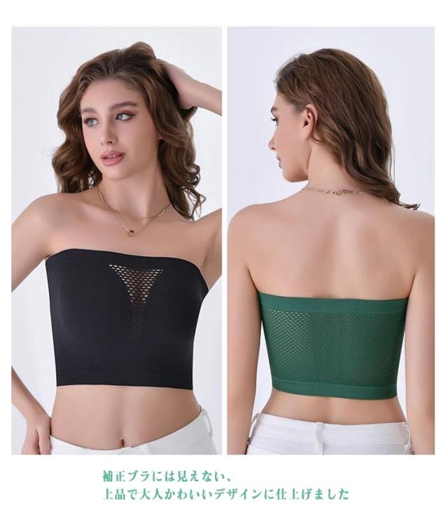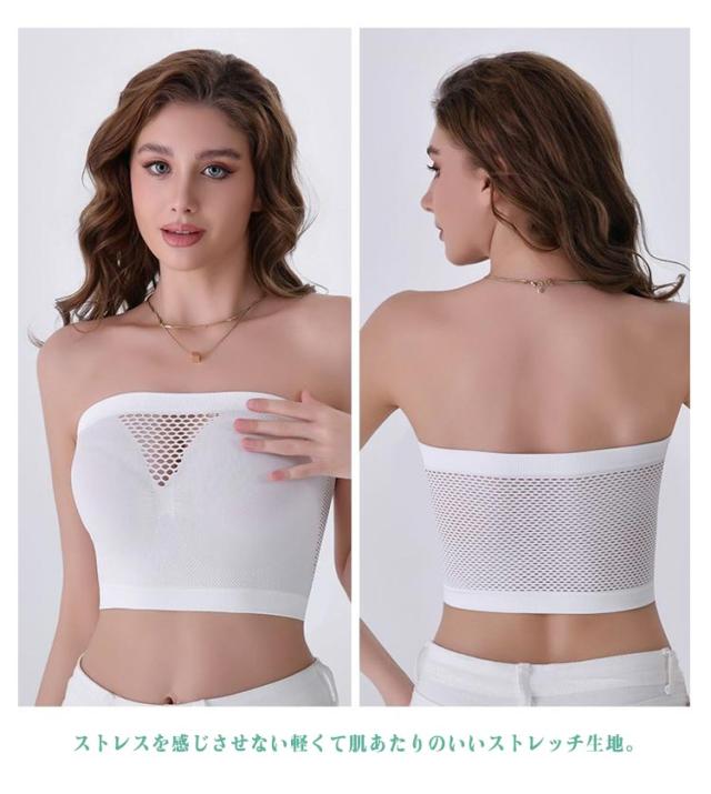 | 肩見せトップスに便利なストラップレスブラです。 チューブトップタイプのおしゃれなデザイン ストレスを感じさせない軽くて肌あたりのいいストレッチ生地。 つるっとした表面のシームレスブラは、肌触りが良く、洋服にも響きにくい 補正ブラには見えない、上品で大人かわいいデザインに仕上げました 吸湿性に優れた素材を使用しています。暑い季節のムレやべたつきを抑え、スポーツウェアのインナーにもオススメです。 使い勝手がよく、ファッションから、忙しい毎日にも長くお使い頂けます | |