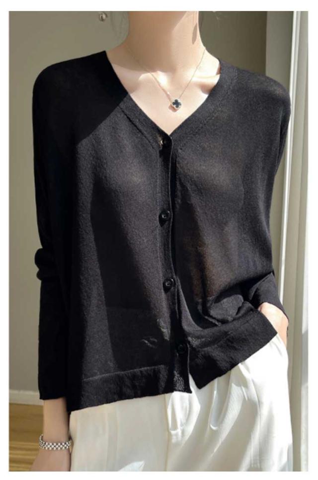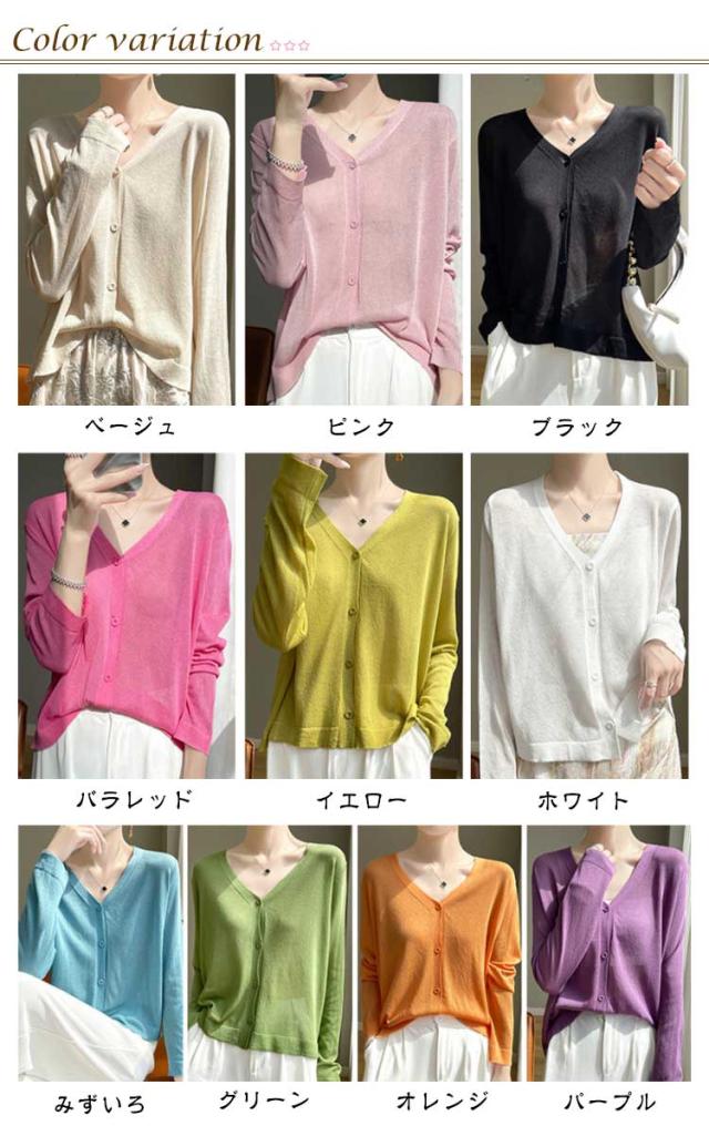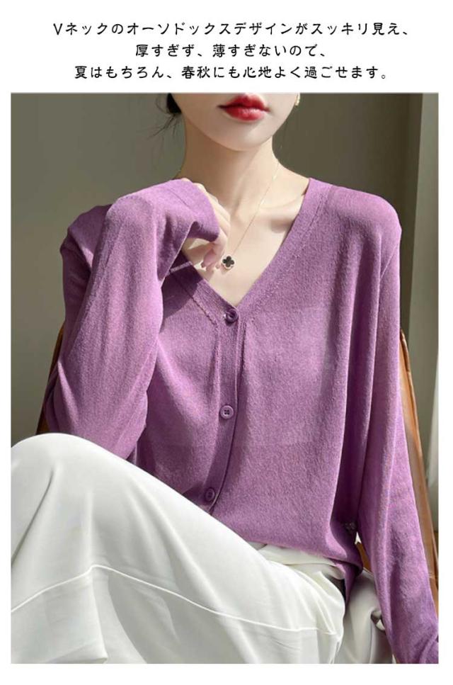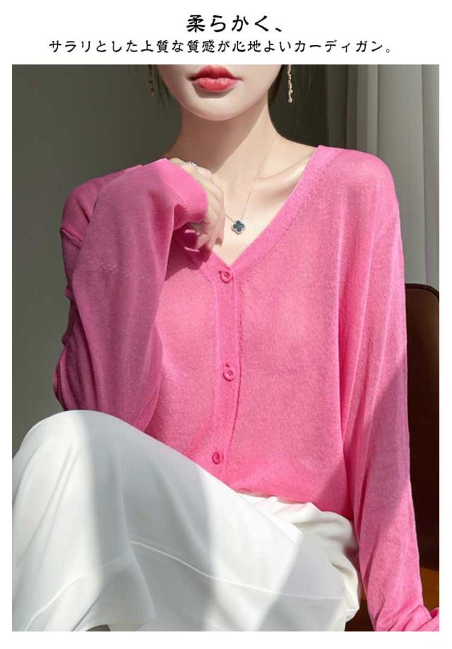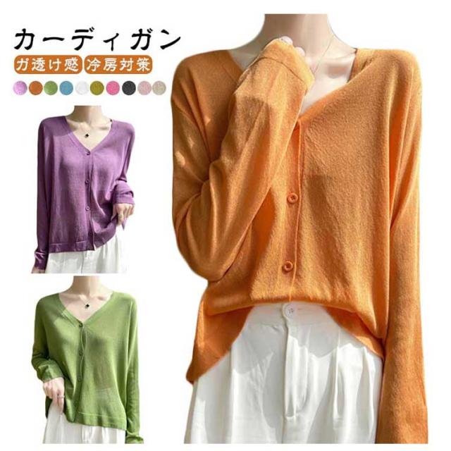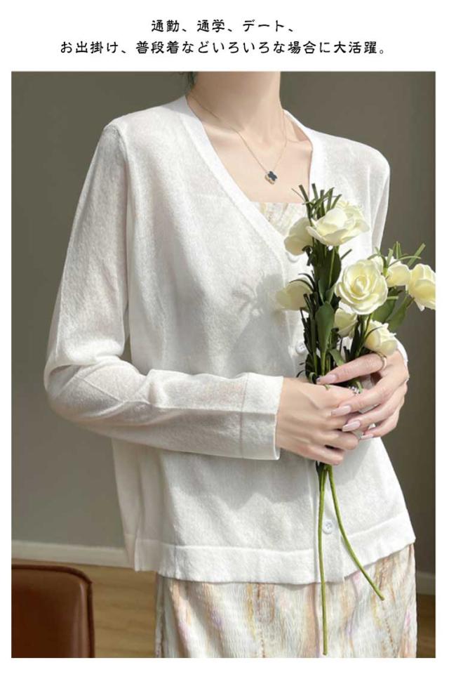 カーディガン カーディガン UVカット シアーカーディガ透け感 涼しい サマーカーディガン 無地 長袖 羽織 Vネック ゆったり ニットカーディガン 薄手 アウター レディース 冷房対策 サマーニット 紫外線対策 通勤 仕事 夏服
