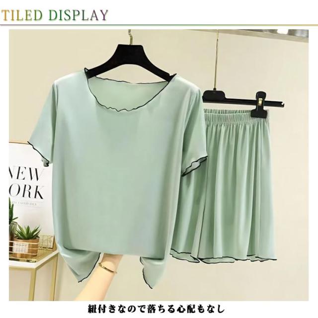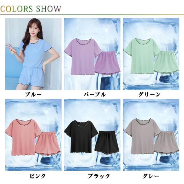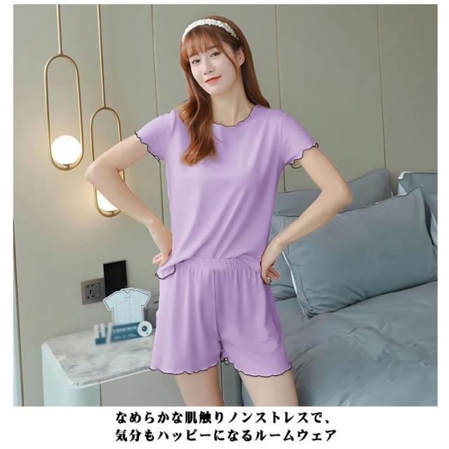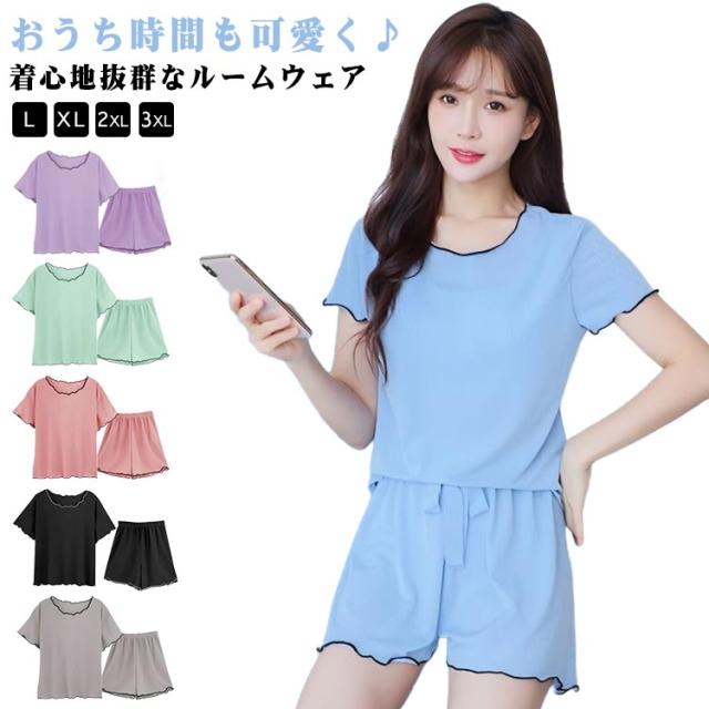ゆったり レディース レディース Tシャツ 薄手 半袖 ショートパンツ 短パン 春夏 半袖 夏 ゆったり 涼感 Tシャツ 上下セット セットアップ ルームウェア 部屋着 ナイトウェア 寝巻き 2点上下セット 伸縮性 通気性 ソフト 柔らかい 夏用 締め付けない