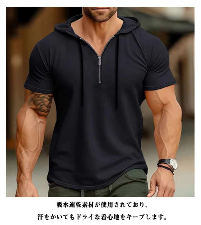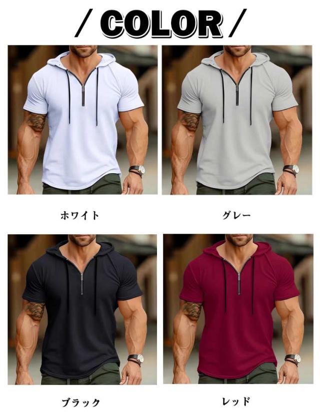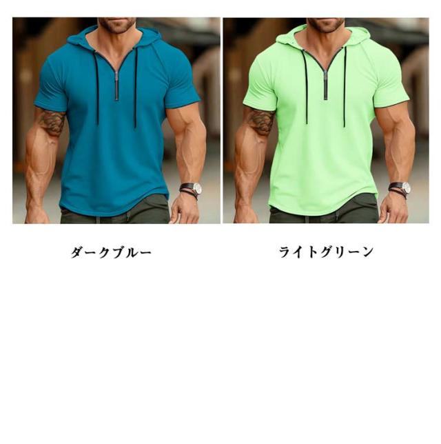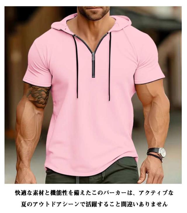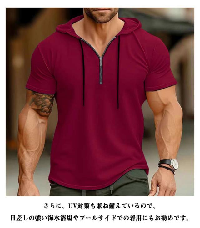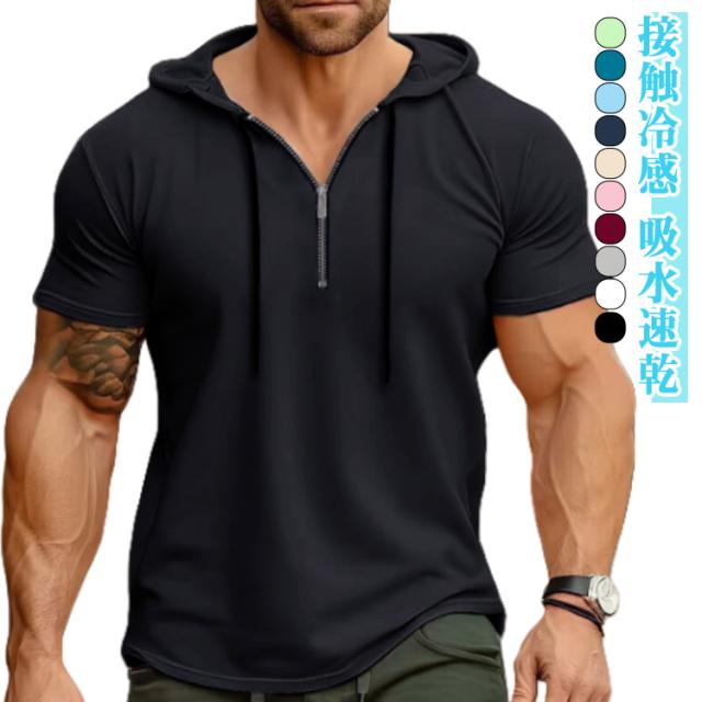 接触冷感 レディース メンズ 半袖パーカー 吸水速乾 トップス 半ファスナー UV対策 パーカー 日よけ プルオーバー 運動着 半袖パーカー 海水浴場