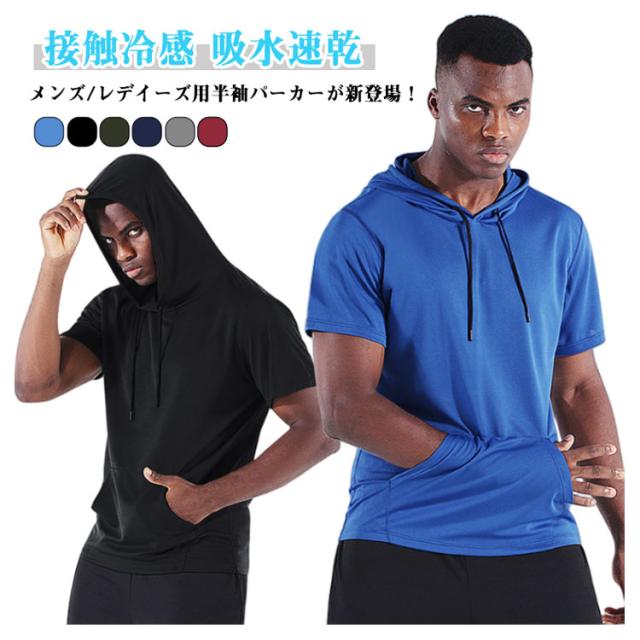 半袖パーカー ドライ レディース メンズ 日よけ 吸水速乾 フロントポケット 半袖パーカー パーカー UV対策 プルオーバー 運動着 トップス 海水浴場