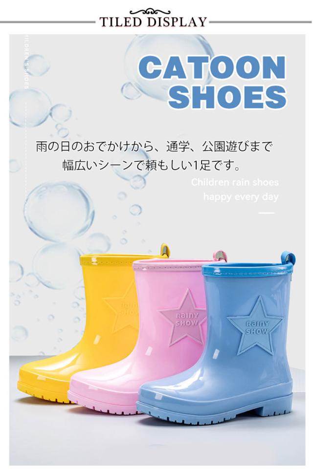 | 雨の日の足元を可愛く彩るキッズレインブーツ。 筒丈が長めなので水の侵入もしっかり防ぎます! 雨の日のおでかけから、通学、公園遊びまで幅広いシーンで頼もしい1足です。 どんな服にも馴染みやすく、雨の日のお出かけがとっても楽しくなります。 兄弟でお揃いや色違いで履かれるのもかわいいと思います。 | |