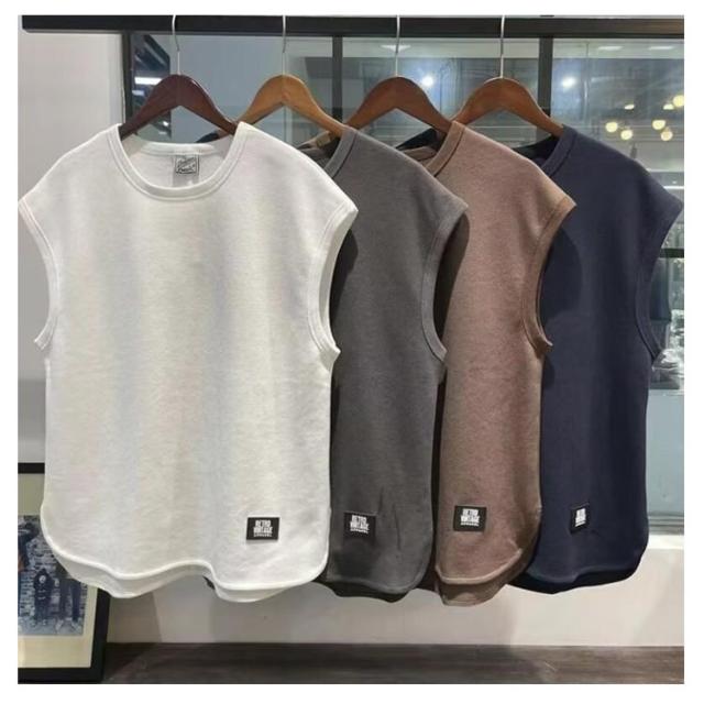 スポーツ クルーネック ゆったり トレーニング ノースリーブ Tシャツ ダンス オーバーサイズ 筋トレ メンズ タンクトップ カットソー 運動着 吸汗速乾 薄手 夏物 無地 シンプル 大きいサイズ