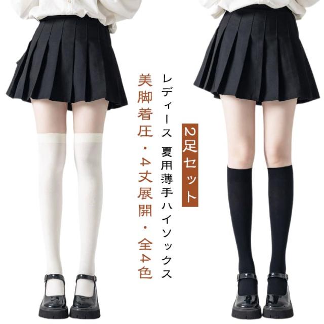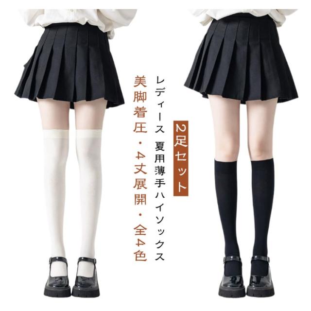レディース ハイソックス くつした 春夏用 靴下 JKコーデ 無地 ジュニア ゴルフ スクールハイソックス 薄手 2足セット 着圧ソックス 美脚 紫外線 uvカット 女性用 むくみ対策 冷え防止