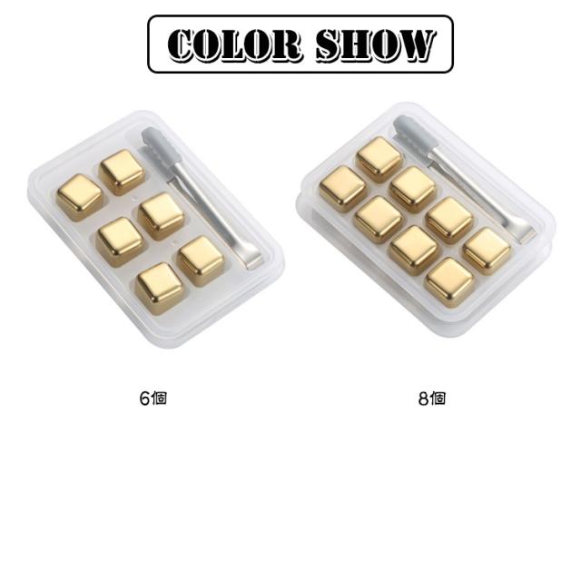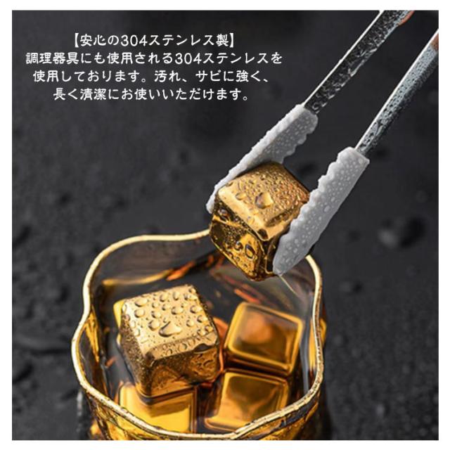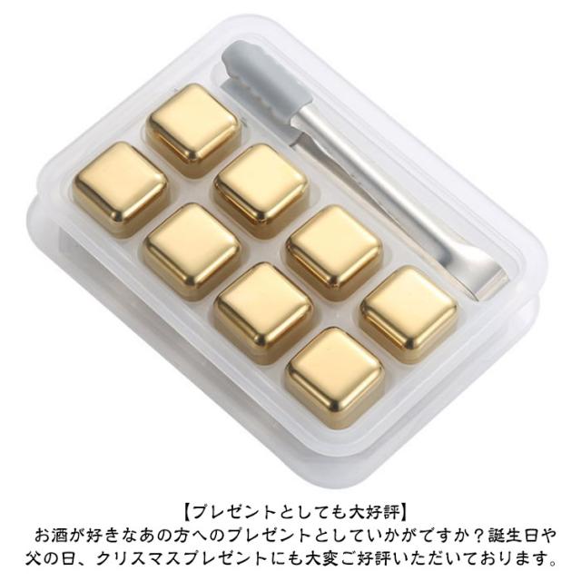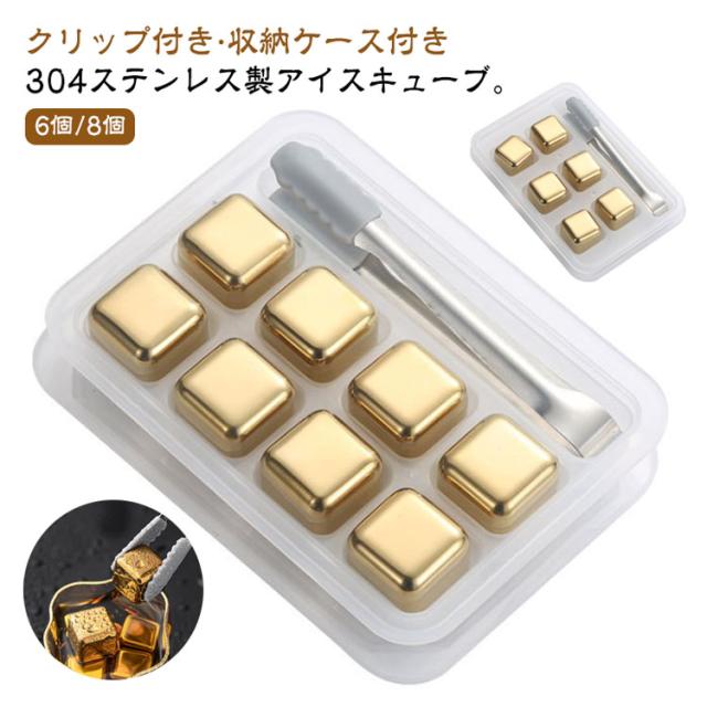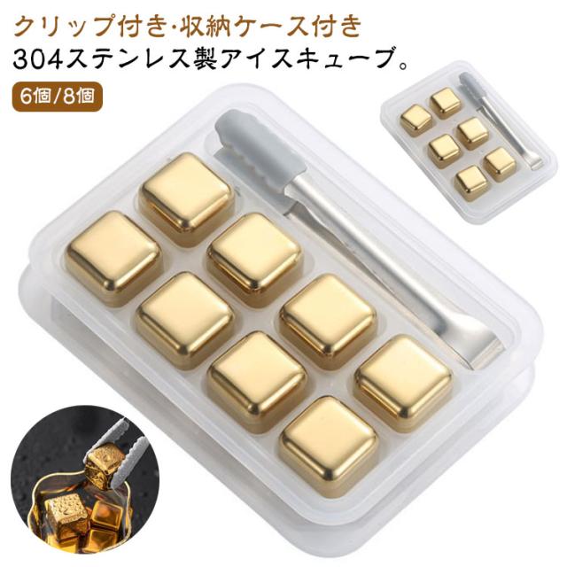8個 304ステンレス 氷 6個 アイスキューブメーカー 溶けない氷 ステンレス氷 ゴールド 収納ケース付き 急速冷却 クリップ付き お酒 男性 繰り返し使用可能 四角氷 父親 誕生日 プレゼント アイスキューブ タンブラー