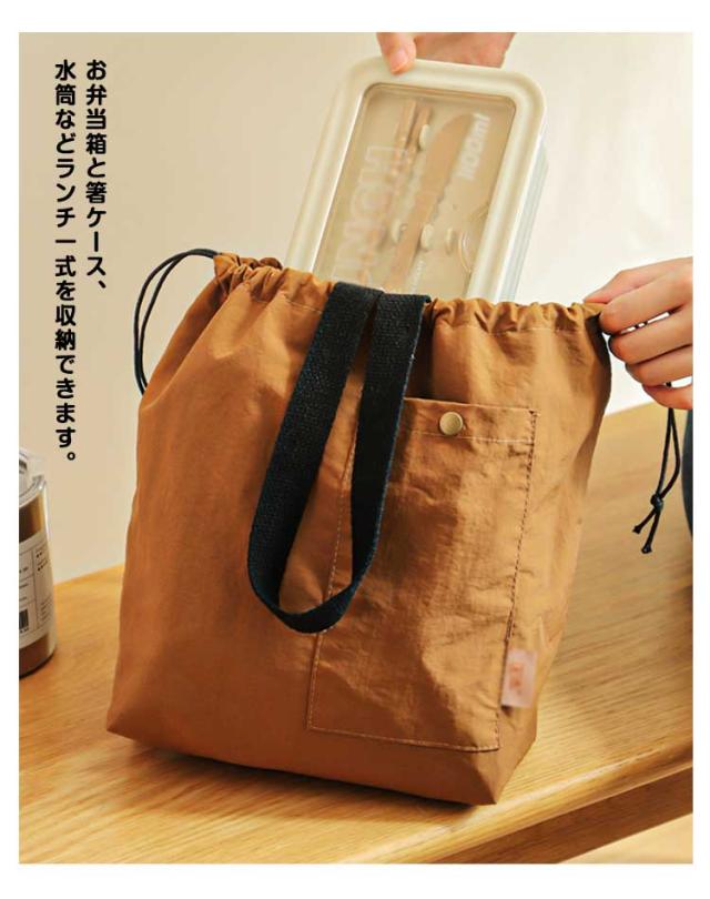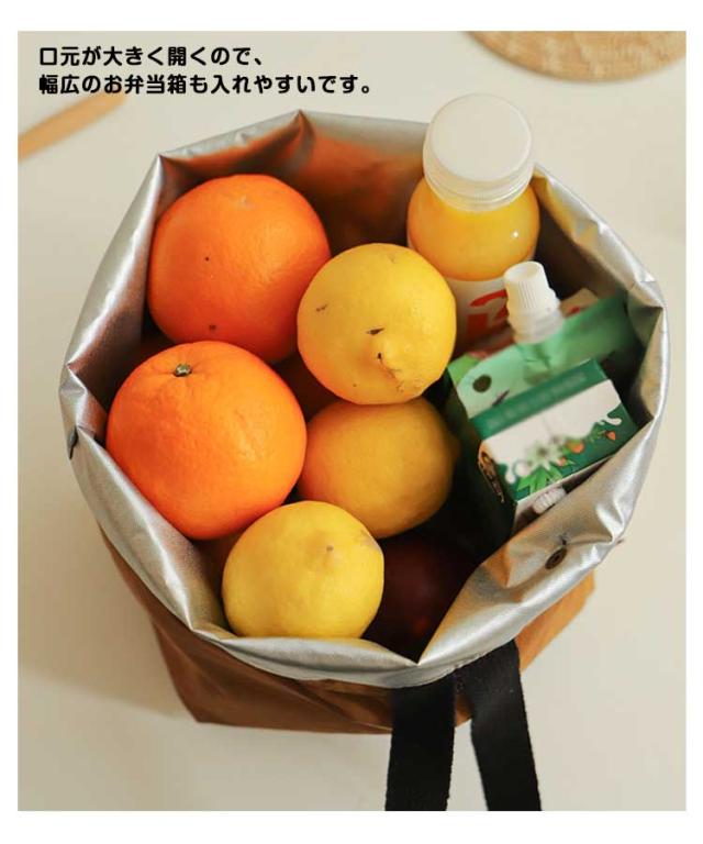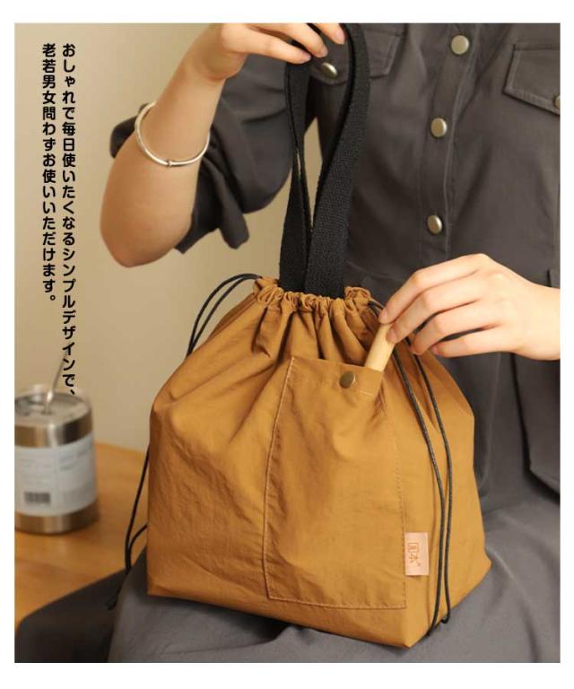 | 使いやすい大容量巾着タイプのランチバッグ 内側にはアルミシートと断熱材で保冷、保温、防水効果があります。 開口部が大きく開きますので、見た目よりも大容量です。 お弁当箱と箸ケース、水筒などランチ一式を収納できます。 口元が大きく開くので、幅広のお弁当箱も入れやすいです。 おしゃれで毎日使いたくなるシンプルデザインで、老若男女問わずお使いいただけます。 通勤、通学、ピクニックやスポーツ、部活など幅広いシーンで活躍してくれます。 ちょっとしたお出かけに、ミニトートとしても使用できるデザイン。 | |